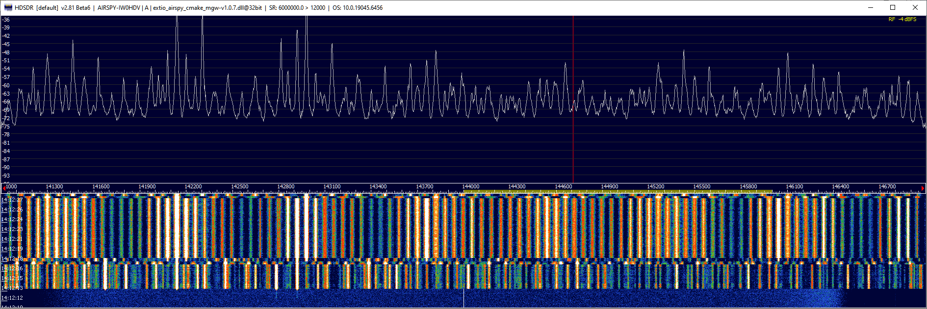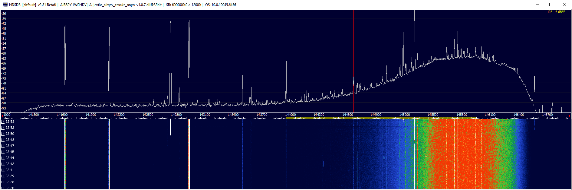 Here is what Airspy Mini receives with its gain is set to a high value:
